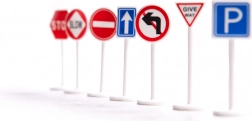 1 x avion, 3 x petites voitures, 1 x set de panneaux de signalisation