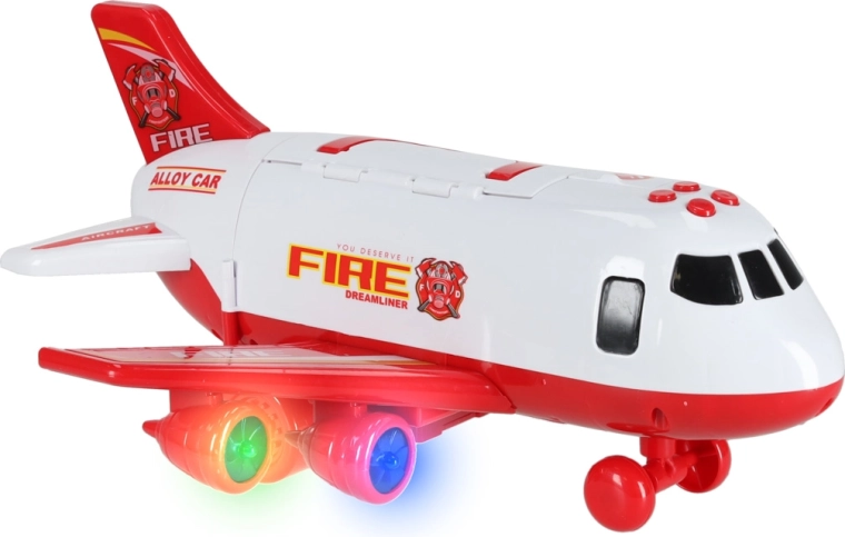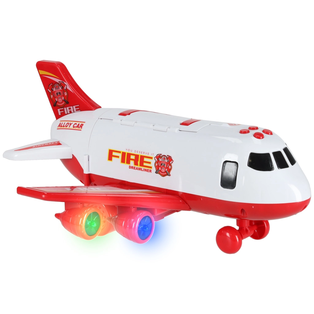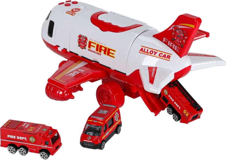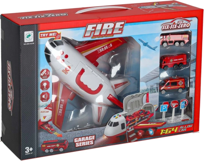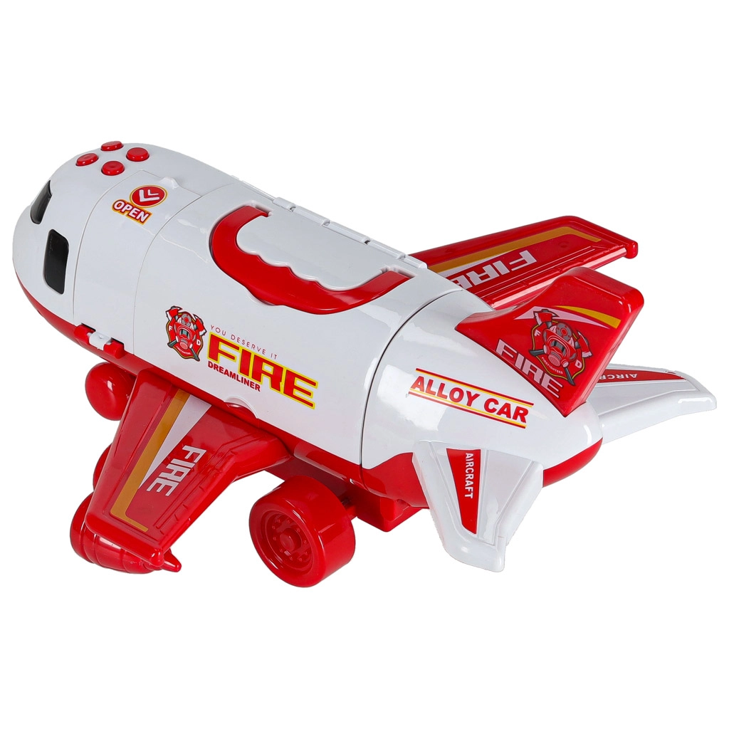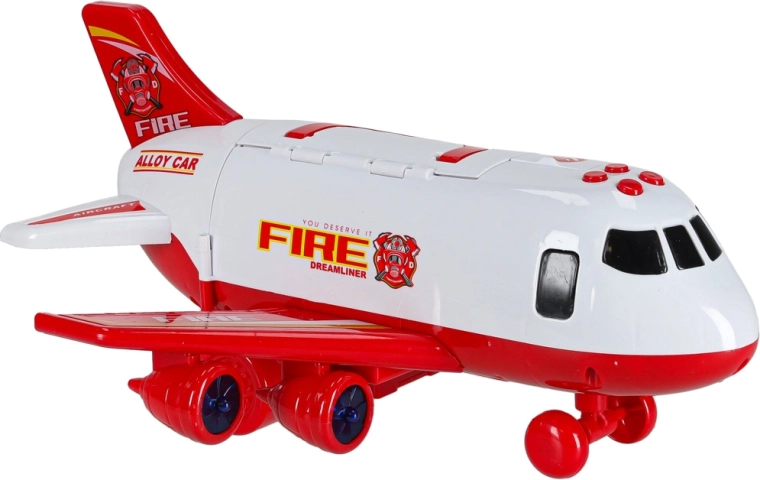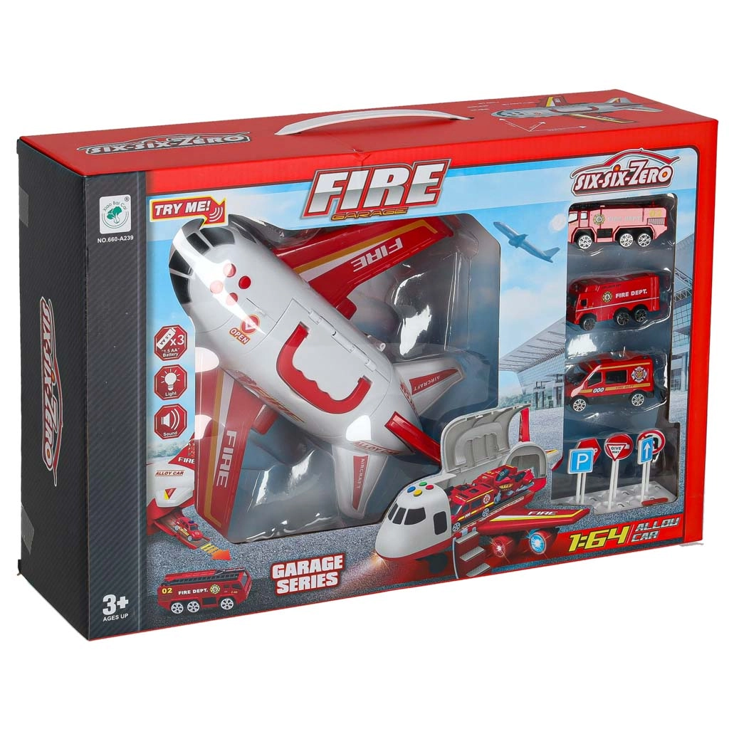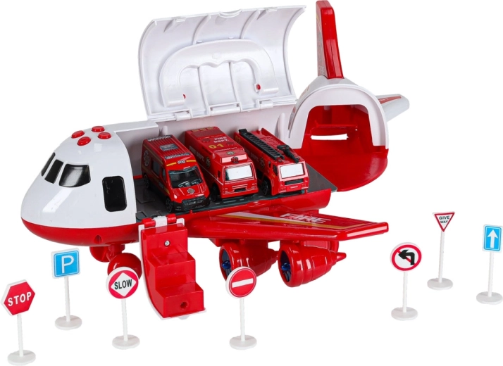 Inclus: 3 camions de pompiers et un ensemble de 7 panneaux de signalisation. Le tout se range dans l’avion, pour garder l’ordre et être prêt à partir.