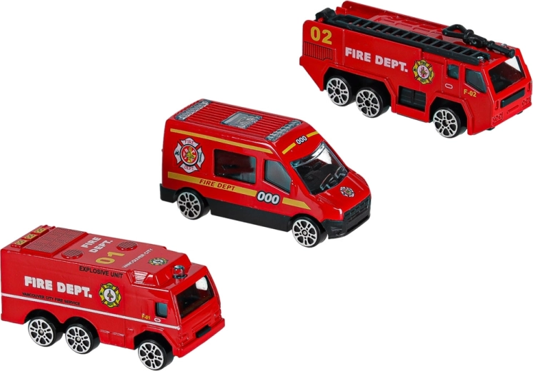 - 3 camions de pompiers rouges: camion à échelle, transport blindé, véhicule urbain