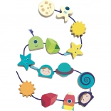 Magnifique jeu de l'espace à enfiler, idéal pour le développement de la motricité fine chez les enfants. Contient 14 perles en bois magnifiquement illustrées telles qu'astronaute, lune, soleil et fusée.