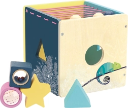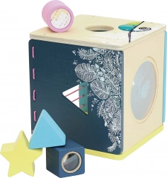 Les enfants peuvent insérer différentes formes dans les ouvertures correspondantes, ce qui développe leur motricité fine et leur perception spatiale.