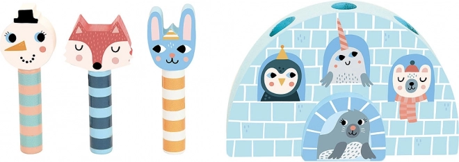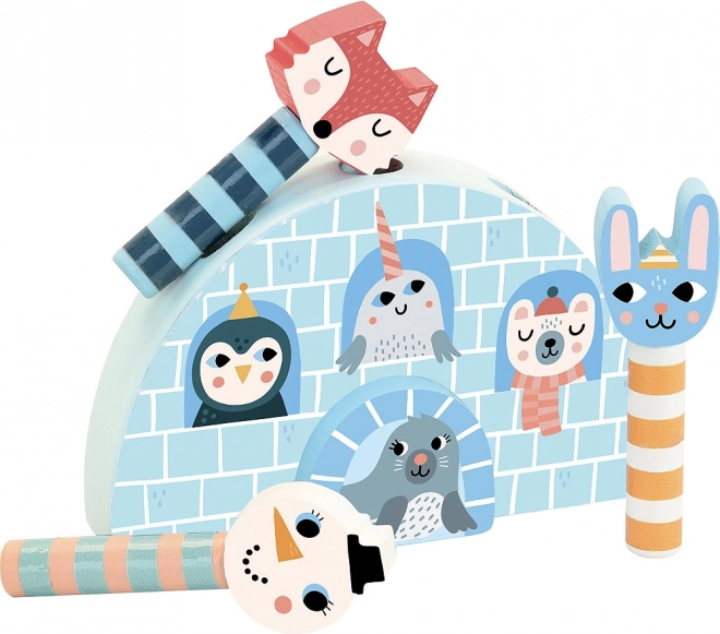 Nous vous présentons un jeu de lancement en bois avec de charmants animaux d’Islande. Les enfants s’amusent avec un trio de personnages — le renard, le lièvre et le bonhomme de neige — qui jaillissent de l’igloo. Le jeu est non seulement amusant, mais favorise aussi le développement de la motricité fine et la créativité des enfants.