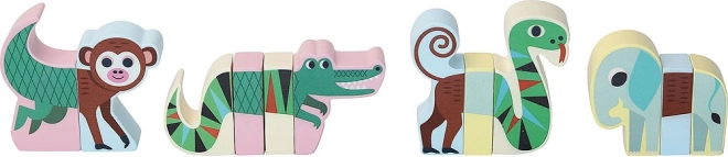 Ce set de puzzles magnétiques permet aux enfants de créer et de découvrir de nouvelles combinaisons grâce à quatre animaux de la jungle.