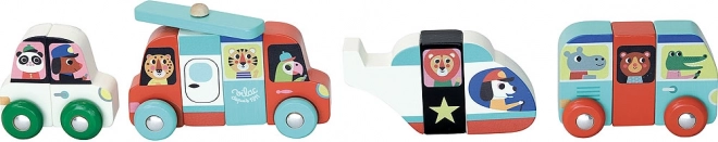 • 4 véhicules en un – bus, hélicoptère, voiture et voiture de police.