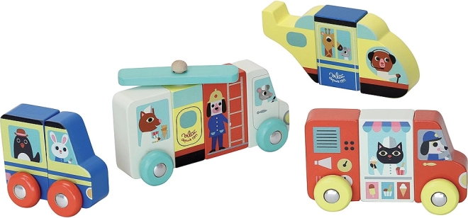 Quatre véhicules différents avec des pièces magnétiques permettent aux enfants d’assembler des modèles corrects ou des mix amusants, stimulant créativité et pensée logique.