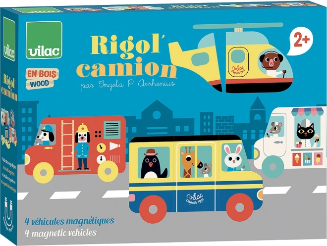 Ce puzzle magnétique en bois de qualité offre aux enfants d’innombrables possibilités d’assemblage. Grâce aux pièces magnétiques, les véhicules se connectent et se séparent facilement, et peuvent même être combinés entre eux de manière amusante. Les couleurs vives et les illustrations rétro de l’artiste Ingela P. Arrhenius rendent chaque séance de jeu visuellement captivante.