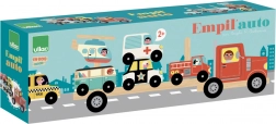Les enfants peuvent transporter, aligner et emboîter le taxi, la police, les pompiers, l’ambulance, l’hélicoptère et le minibus. Idéal pour apprendre les rôles des véhicules en ville.