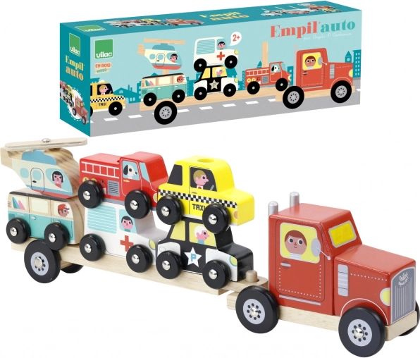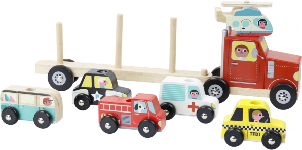 Un ensemble coloré en bois avec camion et remorque offrant des heures de jeu créatif aux enfants dès 2 ans. La longue remorque peut accueillir 6 véhicules – taxi, voiture de police, camion de pompiers, ambulance, hélicoptère et minibus. Le jouet est fabriqué en bois et en métal de qualité, présente une finition lisse et encourage la motricité fine, la coordination main-œil et l’imagination. Le design a été créé par la célèbre illustratrice Ingela P. Arrhenius.