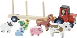 Le joyeux tracteur en bois VILAC avec remorque amovible et six adorables animaux (lapin, mouton, coq, cheval, cochon, vache) est un jouet idéal pour les enfants dès 2 ans. Grâce à l’encastrement des figurines et à la conduite avec la remorque, les enfants exercent la coordination œil-main, la patience et la fantaisie.
