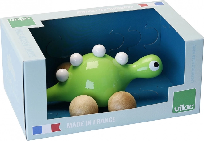 Profitez de moments ludiques avec le dinosaure en bois à roulettes de la marque Vilac. Ce mignon dinosaure est peint en vert et orné de protubérances blanches sur le dos. Grâce aux roues en bois, votre petit explorateur peut facilement faire rouler le dinosaure dans la maison ou à l'extérieur.