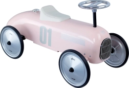 La draisienne rose s'inspire des voitures de course classiques et donne aux enfants le sentiment d'être de véritables coureurs.