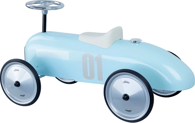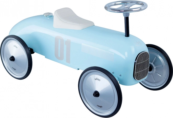 Découvrez le charme des voitures de course classiques à hauteur d’enfant. Cette draisienne métallique bleu clair, inspirée des véhicules anciens, combine un design intemporel avec une utilisation sûre et confortable. Les roues à bandage caoutchouté assurent un roulement silencieux même sur sol dur, tandis que le volant gère le braquage des roues avant pour une direction naturelle.