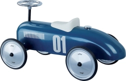 Draisienne au style voiture de course, fabriquée en métal, offrant grâce à son design une forme de déplacement sûre et amusante pour les enfants. Elle est équipée de :