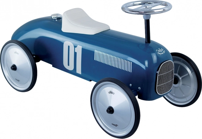 Draisienne vintage élégante qui associe une structure métallique à une couleur bleue attrayante, idéale pour les plus petits passionnés d’automobiles.