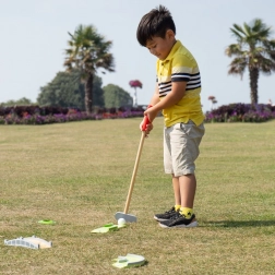 Des éléments et obstacles variés de mini-golf maintiennent les enfants en mouvement et les aident à améliorer précision et stratégie de jeu.