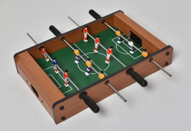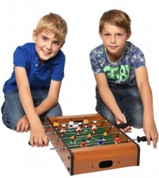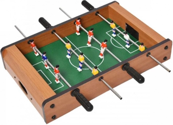 Ce baby-foot compact est le choix idéal pour tous les amateurs de football qui souhaitent s'amuser à la maison. Construit en bois coloré et laqué, il assure une longue durée de vie. Chaque équipe a 6 joueurs placés sur deux barres, permettant un contrôle facile et une simulation de match de football réelle.