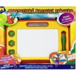 La tablette de dessin magnétique est le choix idéal pour les petits artistes à la maison comme en voyage. Grâce au stylo magnétique magique et aux trois tampons, les enfants profitent d’heures de création sans papier ni crayons. D’un simple mouvement de la réglette d’effacement, le dessin disparaît et la surface est prête pour une nouvelle œuvre.