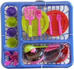 Avec le set de vaisselle de cuisine MAC TOYS, vos enfants prépareront facilement un « déjeuner » pour toute la famille. L’ensemble offre un riche assortiment d’accessoires pour une cuisine pour enfants : égouttoir, poêle avec couvercle, casserole, passoire, set de couverts, 4 gobelets, 4 assiettes, louche à bec et grande louche.