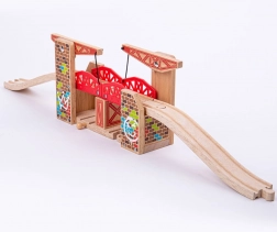 Le pont-levis double de Bigjigs Rail vous permet de lever facilement les deux côtés afin d'offrir suffisamment d'espace pour le passage simultané de deux trains. Ce pont est compatible avec la plupart des autres marques de chemins de fer en bois.