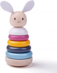 Cette tour à empiler en bois de qualité, aux couleurs pastel, est un premier jouet éducatif idéal. Les enfants empilent les anneaux du plus grand au plus petit, renforcent la coordination œil-main et apprennent à distinguer les couleurs et les formes. Les oreilles et la queue en tissu du petit lapin ajoutent une dimension tactile au jeu.