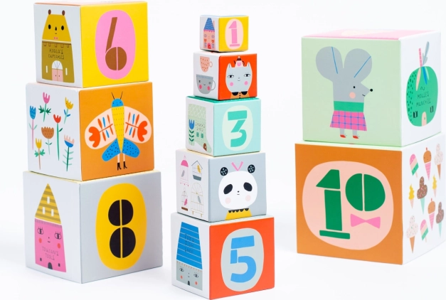Découvrez l’ensemble de cubes ludique et éducatif VILAC illustré par Suzy Ultman. Dix cubes légers en carton apprennent aux enfants les nombres, les couleurs et les animaux, tout en développant la motricité fine et la coordination œil-main. Une conception écoresponsable et un design magnifique raviront enfants et parents.