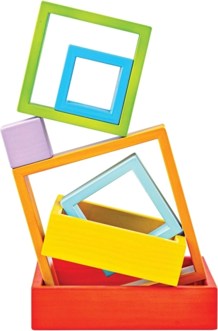 Ce set polyvalent offre d’innombrables combinaisons – sans notice, seulement avec l’imagination. Les enfants peuvent emboîter les carrés par taille, construire des tours, créer des mosaïques ou des cadres colorés pour leurs œuvres, et même décorer la chambre après le jeu. Le bois solide et les bords lisses assurent une prise en main agréable et une longue durée de vie du jouet.