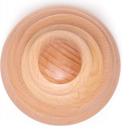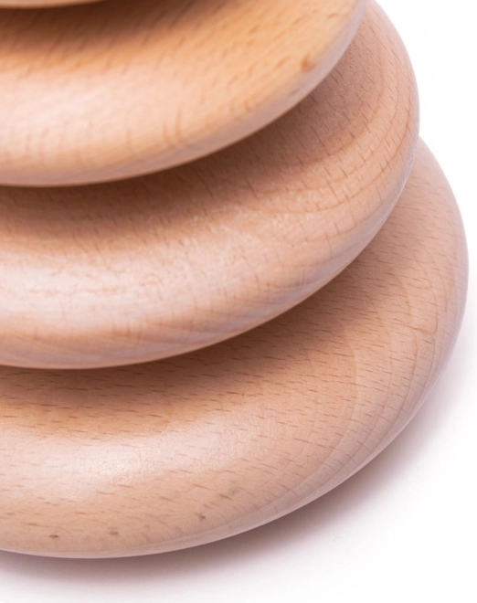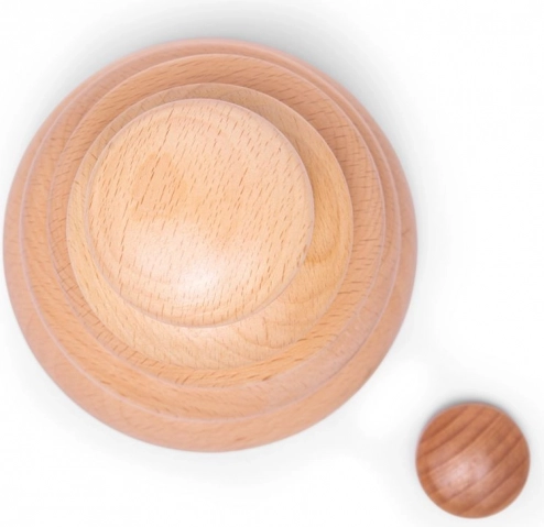 Ce jeu d’équilibre ouvert, sans consignes, invite les enfants à laisser libre cours à leur imagination : construire des tours, créer des motifs, trier par taille ou transformer les galets en une décoration élégante pour la chambre. L’aspect naturel et la surface lisse du bois offrent une expérience tactile agréable et un jeu calme et concentré.