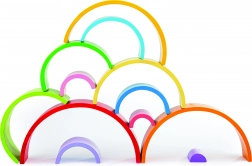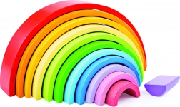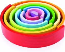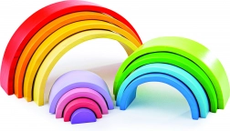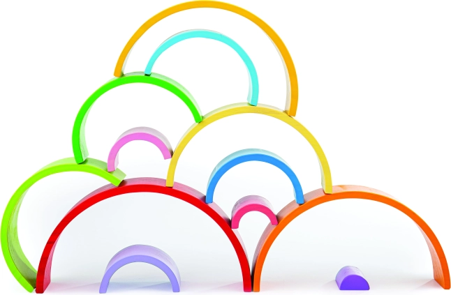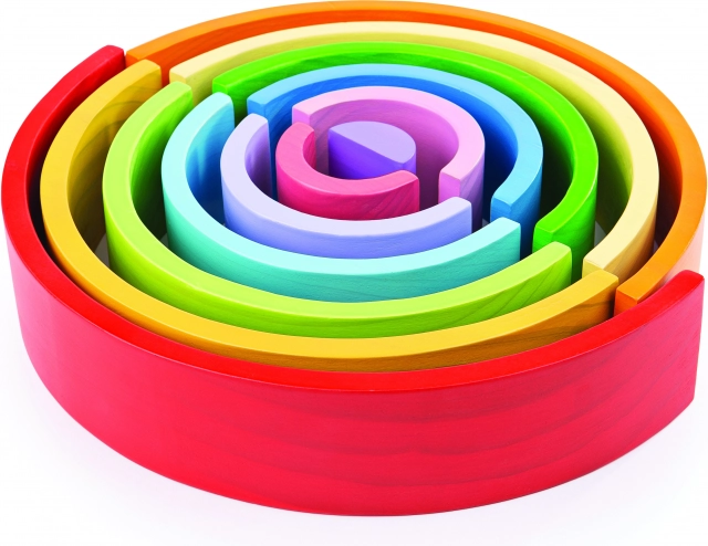 L’arc-en-ciel est fabriqué à partir de bois de qualité, issu de sources responsables, et peint avec des peintures sûres et non toxiques. Il respecte les normes européennes de sécurité actuelles, vous garantissant une utilisation sûre et durable. Une fois le jeu terminé, la palette d’arcs colorés devient un bel élément décoratif dans la chambre d’enfant ou en crèche.