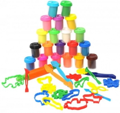 20 pots de pâte à modeler, spatules, moules, presses