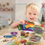 Créez un ensemble d'hamburgers d'apparence délicieuse avec MODELO Pâte à modeler joyeuse – contient des moules spéciaux et de la pâte à modeler pour une production facile.