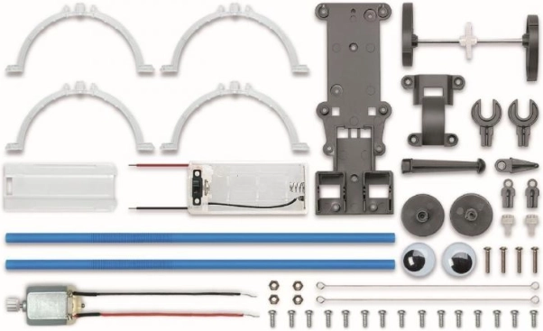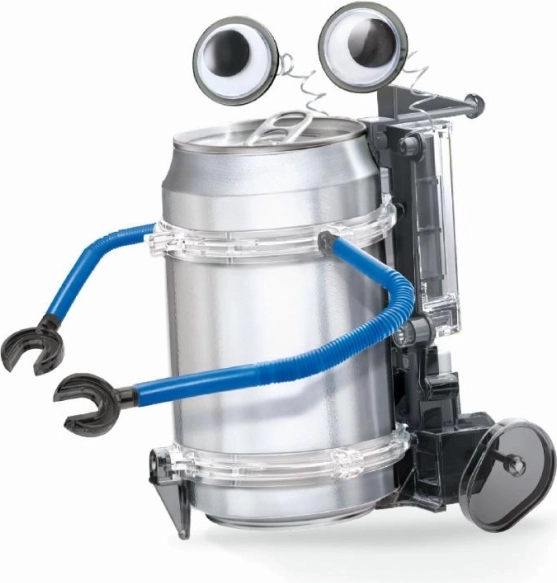 La boîte contient toutes les pièces nécessaires, à l’exception de la canette. À l’aide d’un guide illustré, les enfants assemblent pas à pas le robot, qu’ils peuvent décorer avec des yeux mobiles et des bras flexibles. Ils obtiennent ainsi un jouet original qui développe avec plaisir les compétences STEM.