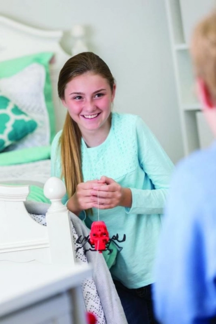 Le robot araignée se dandine de façon réaliste de haut en bas le long d’une ficelle, imitant les mouvements d’une véritable araignée.