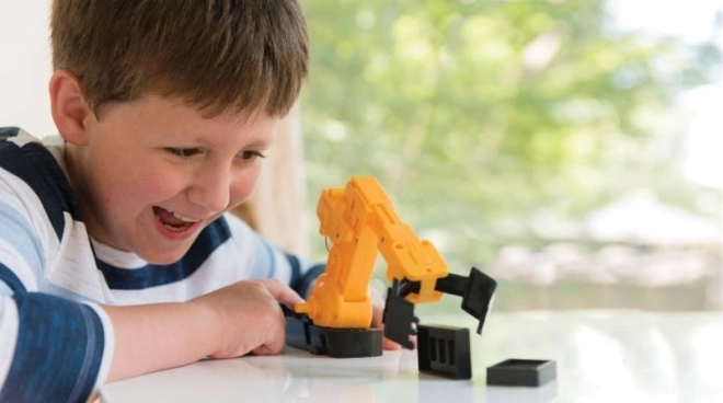 Le mécanisme motorisé reproduit fidèlement le mouvement des bras industriels et constitue une introduction idéale à la mécanique et à l’électrotechnique. Le kit favorise l’apprentissage par projets et illustre de manière ludique les principes STEM/STEAM.