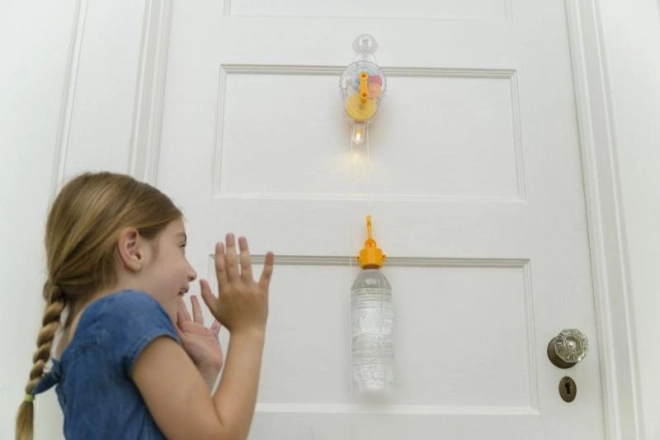 Suspendez un poids et observez comment sa chute convertit l’énergie gravitationnelle en lumière. Une excellente démonstration de physique appliquée que les enfants comprennent immédiatement.