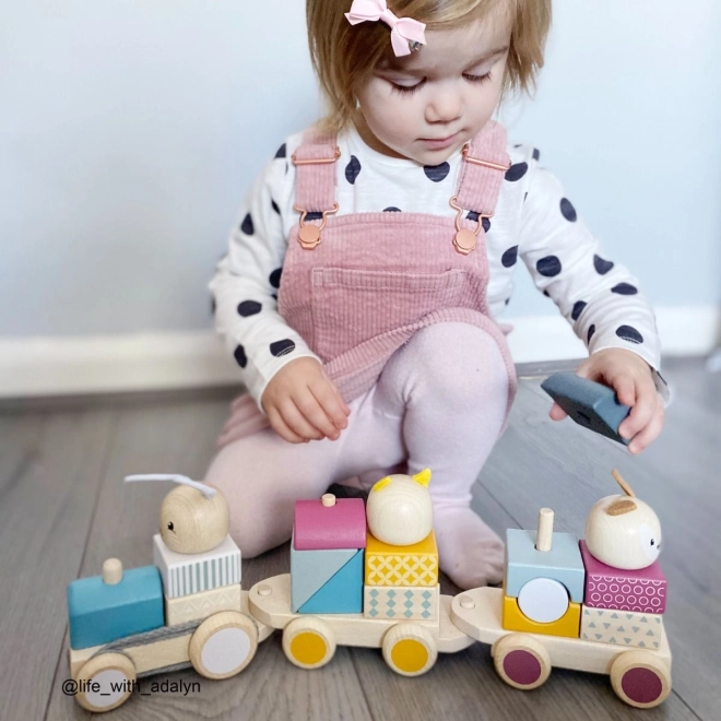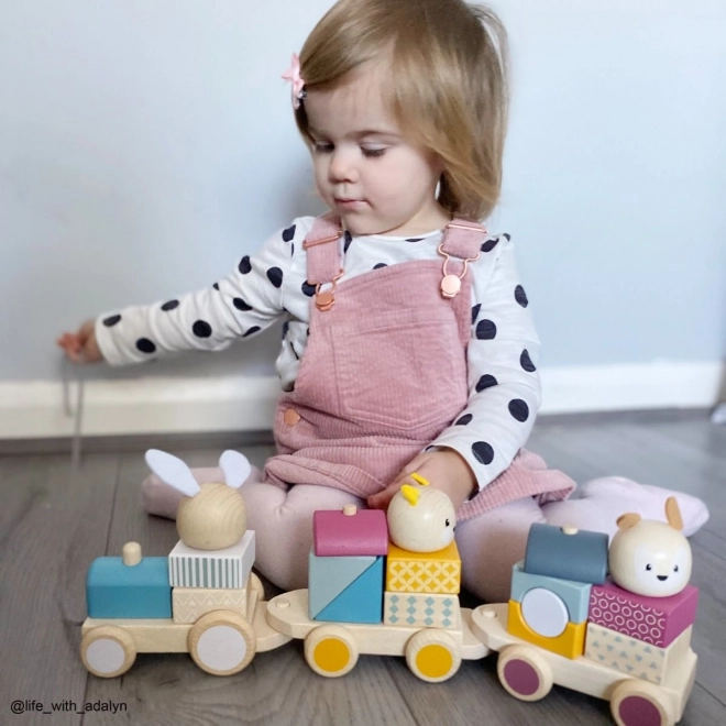 Tous à bord ! Ce mignon train à tirer en bois 100 % FSC réunit jeu et apprentissage. Il comprend trois passagers animaux, une locomotive et deux wagonnets, et grâce à ses blocs colorés, il sert de jeu d’encastrement et puzzle pour développer la motricité fine et le comptage. Finition lisse, peintures non toxiques et matériaux durables pour des années de jeu en toute sécurité.