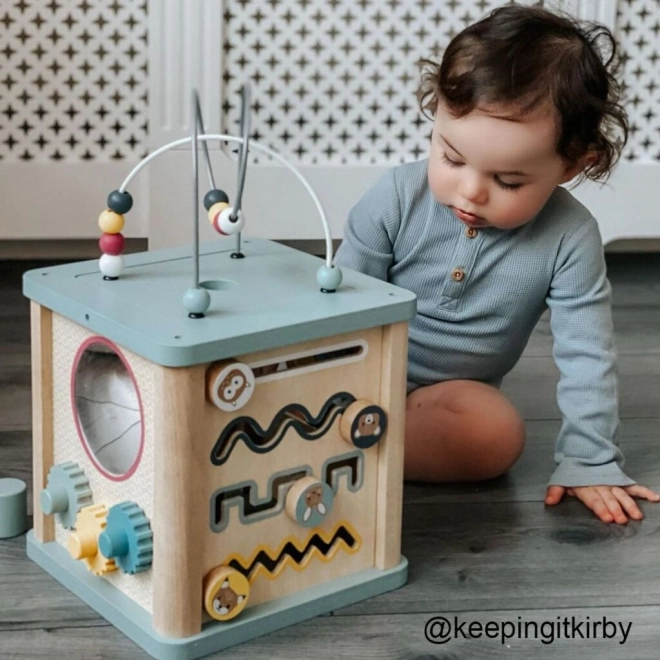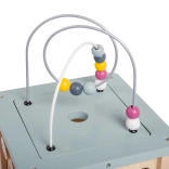 Découvrez un cube d’activités polyvalent en bois 100 % FSC de haute qualité, qui divertira les enfants pendant de longues heures. Chaque face propose une activité différente – boîte à formes, piste à billes, roues dentées et plus encore. L’association du bois naturel et de doux tons pastel convient aussi bien aux garçons qu’aux filles. Ce jouet favorise le développement de la motricité, de la communication et la reconnaissance des chiffres et est sans danger pour les enfants grâce à des matériaux respectueux, certifiés FSC.
