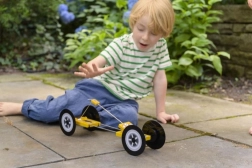 La voiture de course KidzLabs montre aux enfants les bases de la physique grâce à la transformation de l’énergie du ressort en mouvement.