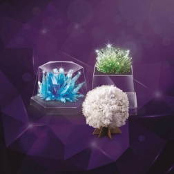 Le coffret comprend également des colorants grâce auxquels vous pouvez personnaliser les cristaux obtenus. La taille, la forme et la couleur des cristaux varient selon les conditions expérimentales, de sorte que chaque culture est unique et instructive. Un mode d’emploi détaillé pour toutes les expériences est inclus.