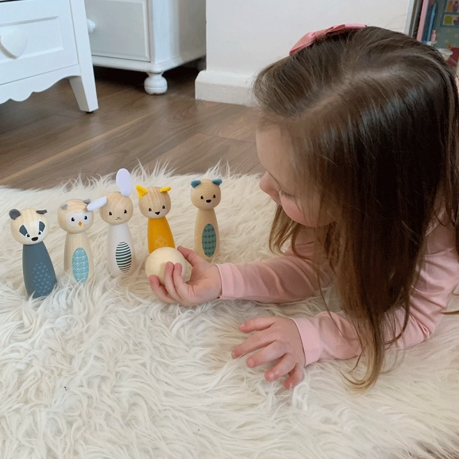 Faites plaisir aux enfants avec un set de quilles stylé et ses animaux adorables – chouette, blaireau, cerf, chat, ours et lapin. Les figurines colorées en bois certifié FSC sont lisses, agréables au toucher et résistantes à un usage quotidien. Le set convient pour jouer à la maison sur un tapis ou sur un sol lisse.