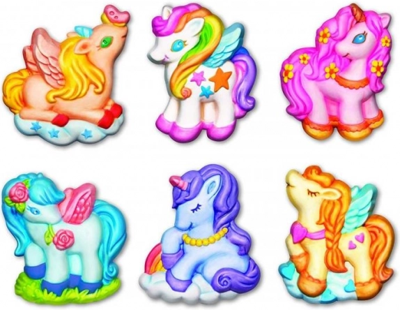 Créez et peignez des aimants en plâtre scintillants pour le réfrigérateur ou des broches en forme de 6 licornes adorables. Idéal pour développer la créativité des enfants.