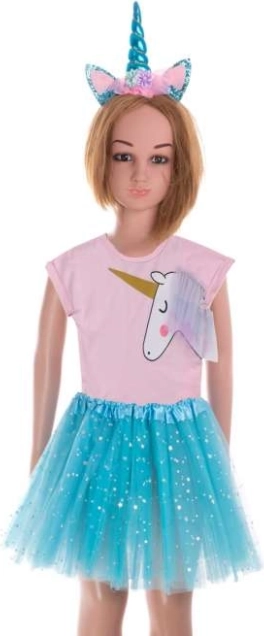 Ce costume féerique illuminera chaque bal et éveillera l’imagination des enfants. La jupe en tulle façon ballerine est légère, brillante et s’ajuste facilement grâce à sa taille extensible. Le serre-tête est orné d’une corne souple et d’oreilles scintillantes – l’accessoire parfait pour une petite fée ou sorcière.