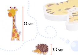 Transformez le bain en un safari aquatique amusant ! Cet ensemble comprend 18 animaux en mousse légers qui, une fois mouillés, adhèrent à la baignoire et au carrelage, flottent sur l’eau et sèchent rapidement. Un excellent jouet pour développer la motricité fine, la pensée logique et la créativité pendant le bain quotidien.