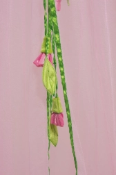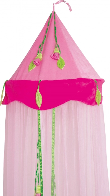Ce baldaquin est décoré de différentes petites roses et de feuilles vertes qui donnent à chaque pièce une apparence ludique et élégante.