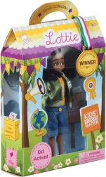 Lottie Activiste Meg est une petite héroïne courageuse qui inspire les enfants à avoir confiance en eux et à exprimer leurs propres opinions. Sa tenue fait écho à l’engagement citoyen – t-shirt jaune avec l’inscription « Kids Voices Matter », veste verte avec badge « Stand Up », short en jean et baskets blanches.