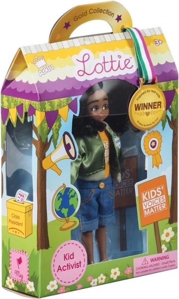 Découvrez la poupée Lottie Activiste Meg – inspirée par la véritable jeune activiste Mari Copeny. Elle encourage les enfants à faire entendre leur voix et à changer le monde pour le meilleur. La poupée possède un corps articulé, des cheveux premium soyeux, tient debout seule et est fabriquée en vinyle sans phtalates. L’emballage inclut des accessoires stylés, dont un mégaphone et une pancarte.