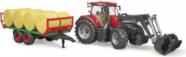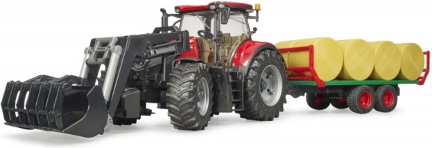 Tracteur Bruder Case IH Optum 300 CVX avec chargeur frontal et remorque à balles