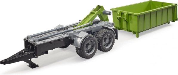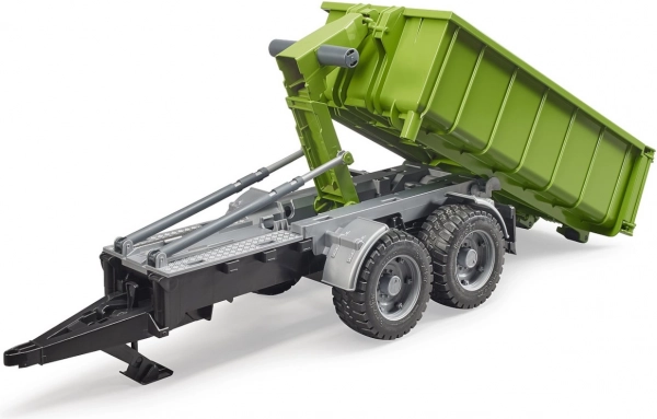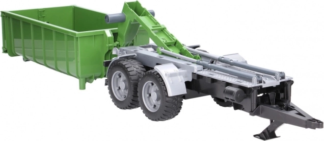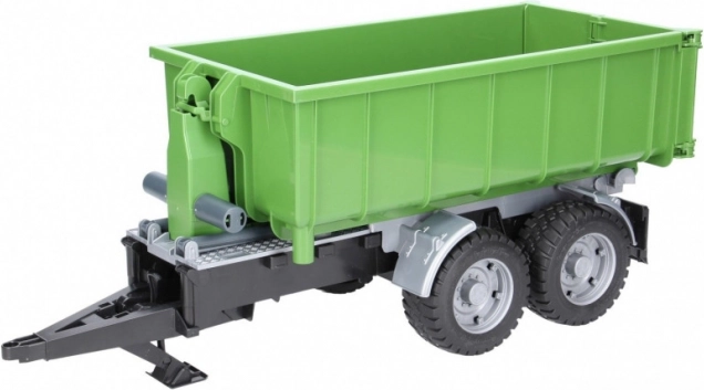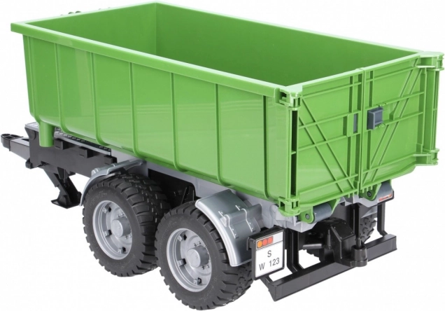 Cette remorque BRUDER réaliste au design vert-noir dote chaque tracteur d'un conteneur polyvalent. Grâce au mécanisme basculant et à la paroi arrière ouvrante, le déchargement est simple; le conteneur peut en outre être retiré du châssis et utilisé séparément.