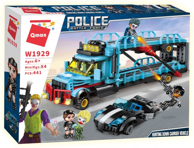 Entrez dans l’univers des interventions policières avec le set détaillé Qman Police Battle Force. Le camion à deux étages des voleurs est prêt à s’enfuir, mais votre unité dans la voiture rapide a un coup d’avance. Avec 441 pièces, profitez de la construction et du jeu avec de nombreuses possibilités de reconstructions et de scénarios.