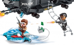 Entrez dans l’univers des missions d’action avec une unité de police qui ne laisse aucune chance aux criminels. L’hélicoptère avec rotors fonctionnels et une échelle de corde descendante permet un débarquement éclair au cœur de l’action, tandis que le fugitif s’échappe sur une machine transformable – de la moto au scooter des mers en un instant.