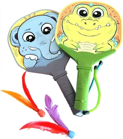 Battes avec balles à plumes au motif d’animaux.